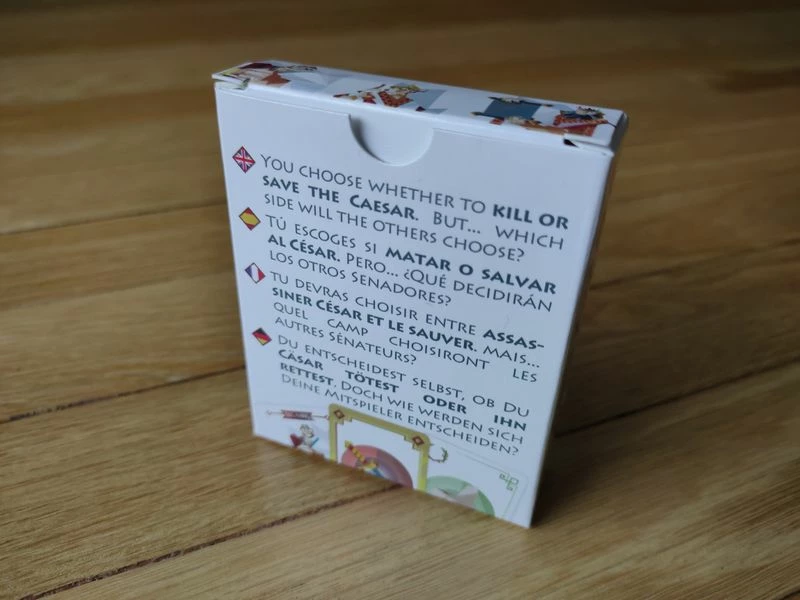 Players are members of the Senate and must plot in favor or against the magnicide of Julius Caesar. But it is not that easy, as they need to identify who shares their convictions in order to partner against the other players…while keeping an eye open for those who only look for their wealth.