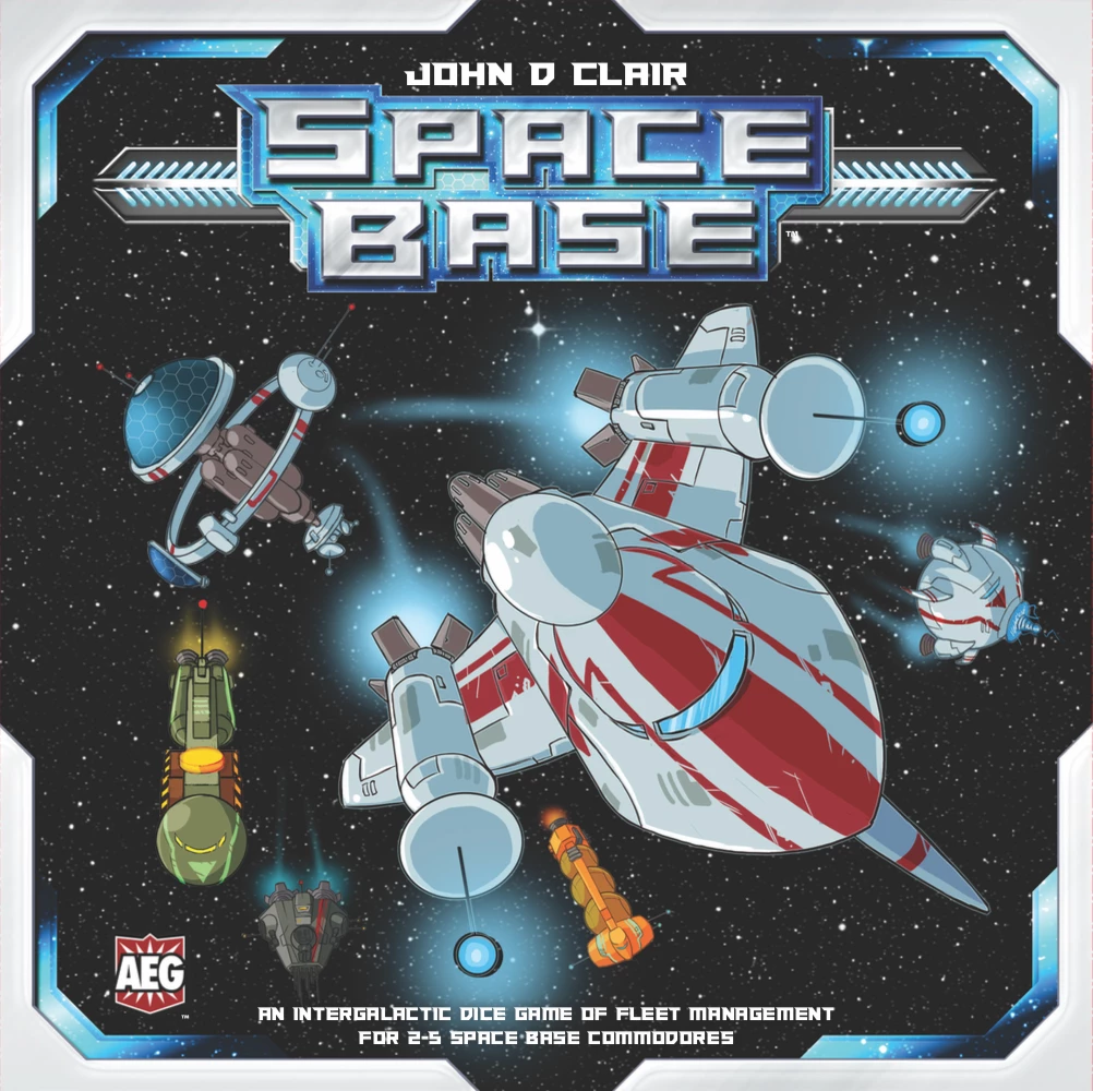 Space BaseΒ is a quick-to-learn, quick-to-play dice game using the core “I roll, everyone gets stuff” mechanism seen in other games. It’s also a strategic engine builder using a player board (your space base) and tableaus of ship cards you can buy and add to your board. The cards you buy and the order you buy them in have interesting implications on your engine beyond just the ability on the card you buy, making for a different type of engine construction than seen in similar games. Players can take their engine in a number of directions: long odds and explosive gains, low luck and steady income, big end-game combos to launch from last to first, or a mix-and-match approach. Ultimately,Β Space BaseΒ is a game you can just start playing and teach everyone how to play in the first round or two and has a satisfying blend of dice-chucking luck and challenging strategic choices.