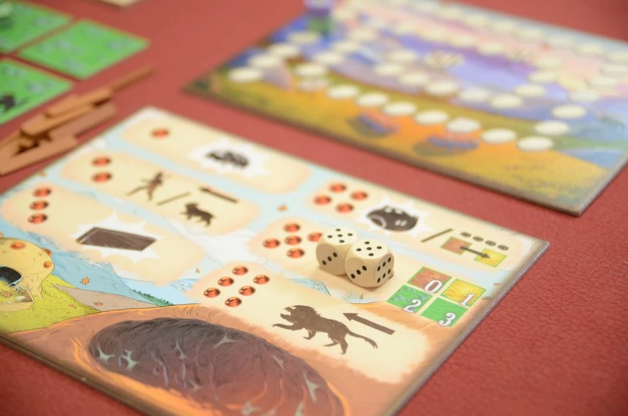SilkΒ is a gateway game into area control and worker placement systems. Players have to move their silkworms to the optimal spaces so they can feed on the best grass available, while pushing the other players’ pieces into less desirable feeding grounds. In this game, players roll dice in order to determine which actions they are allowed to perform during their turn. There are six types of actions available: breeding more silkworms, moving the shepherd or their mastiff, building fences or farms, moving the ookami monster around the board, and β most importantly β getting your silkworms to feed. When silkworms feed, they generate a number of silk points, depending on the type of terrain they are standing on at that moment. These points can be used to modify the outcome of a dice roll, all while keeping in mind that the player with the most silk points at the end of the game wins!
