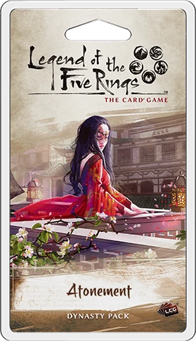 As the sixth Dynasty Pack in the Dominion cycle, the cards in the Atonement Dynasty Pack command attention with the new eminent and rally keywords, while also giving every Great Clan the tools they need to fight for honor. With a new Dragon stronghold, two new province cards, a World Champion-designed card, and a card created in conjunction with the Legend of the Five Rings community, Atonement is a Dynasty Pack that no fan will want to miss.