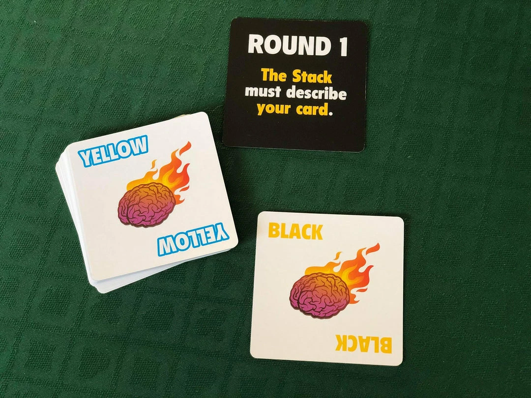 The second round of the game is similar to the first, except that the rule for eligible cards to play is reversed: now a card may be played only if its text describes the qualities of the card in the center. The player with the fewest cards remaining wins.