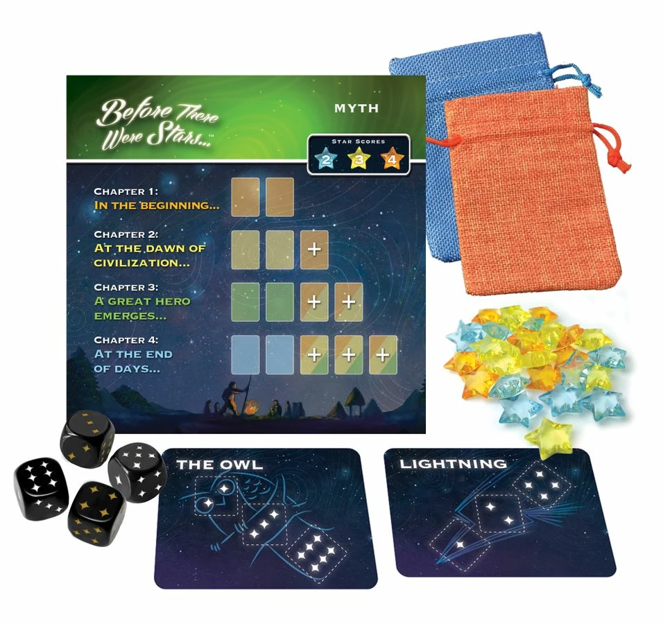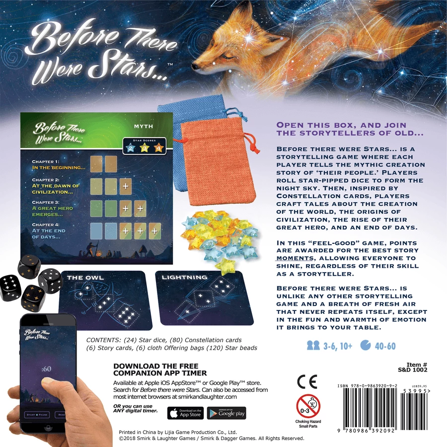 Open this box, and join the storytellers of old.Β Before There Were Stars…Β is a storytelling game in which each player tells the mythic creation story of “their people”. Inspired by constellation cards, players craft tales about the creation of the world, the origins of civilization, the rise of a great hero, and the end of days.