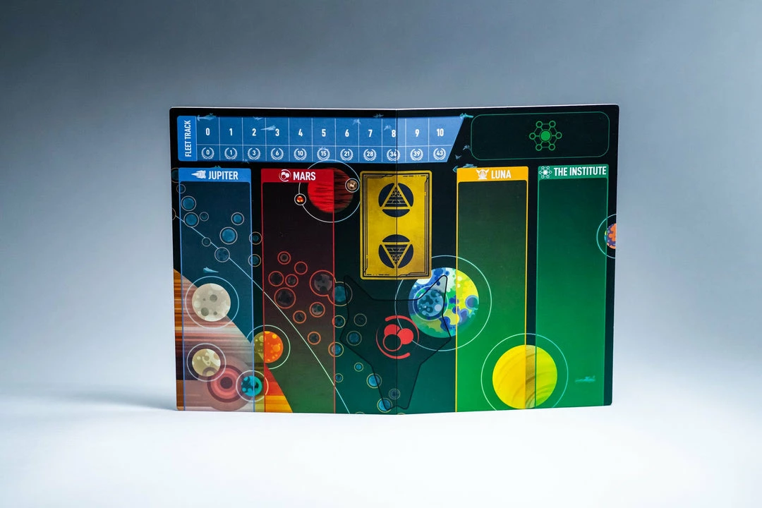 Red Rising is a hand-management, combo-building game for 1-6 players (45-60 minute playing time). You start with a hand of 5 cards, and on your turn you will deploy 1 of those cards to a location on the board, activating that cardβs deploy benefit. You will then gain the top card from another location (face up) or the deck (face down), gaining that locations benefit and adding the card to your hand as you enhance your end-game point total. If at any point youβre really happy with your hand, you can instead use your turn to reveal a card from the top of the deck and place it on a location to gain that locationβs benefit.