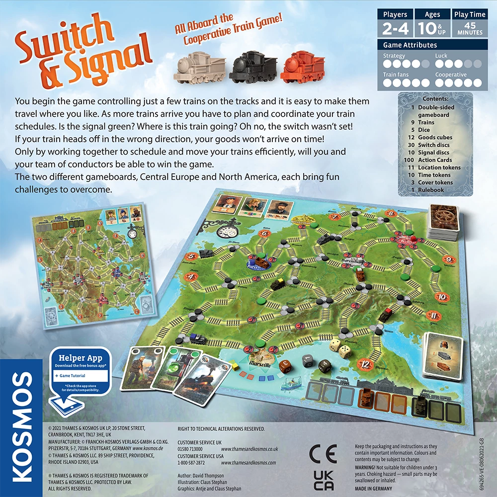 The railways run at different speeds in the co-operative gameΒ Switch & Signal, so players have to coordinate well to transport goods to their destination without wasting time. The journey goes across Europe, the United States, and Canada. Thanks to simple rules, the game can start right away. Time is running out…